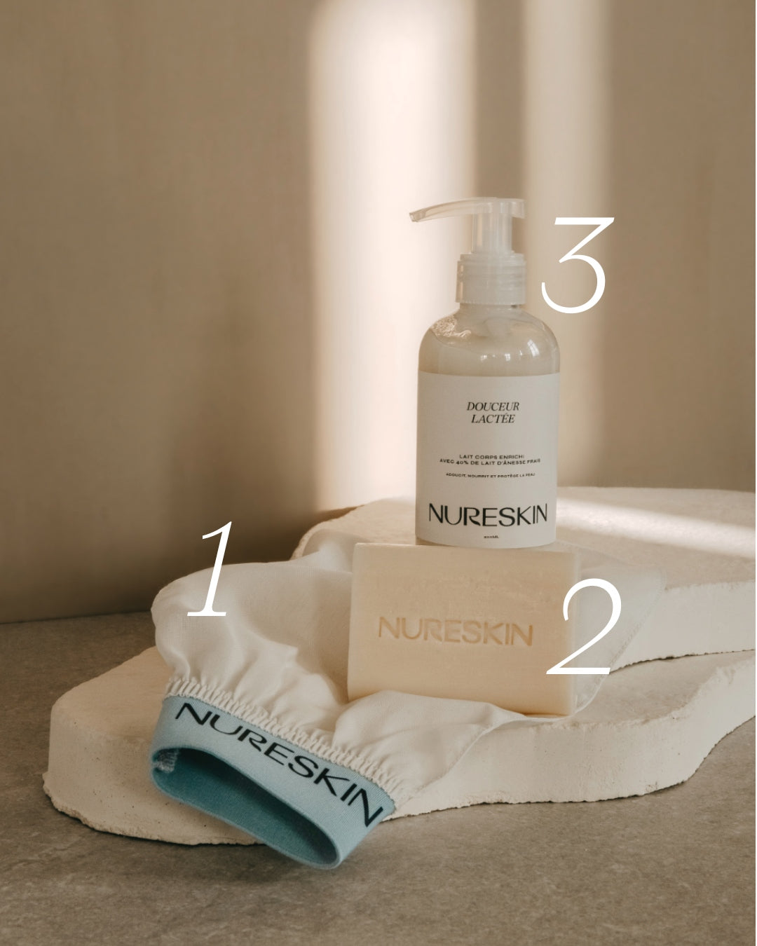 Nettoyez ensuite votre peau avec un nettoyant doux comme notre soin lavant au lait d'ânesse et hydratez enfin pour maintenir l'équilibre de l'hydratation naturelle de votre peau.