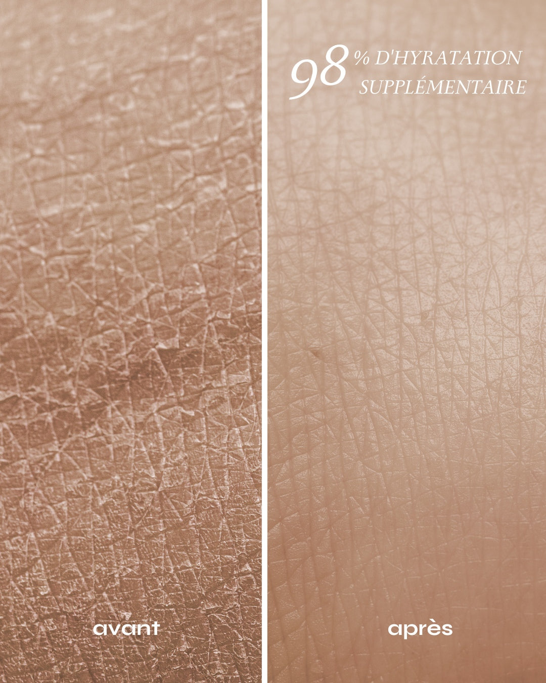 Sensation d'hydratation profonde, la peau est plus douce et moins rêche, sensation de confort.