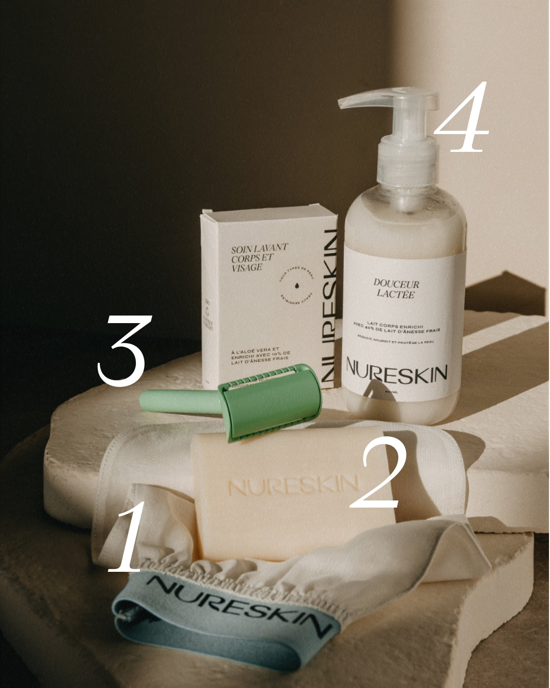 Le lait d'ânesse est reconnu pour être doux et adapté à tous les types de peau. Peaux sèches, mixtes et grasses profiterons toutes des innombrables bienfaits de cette routine.